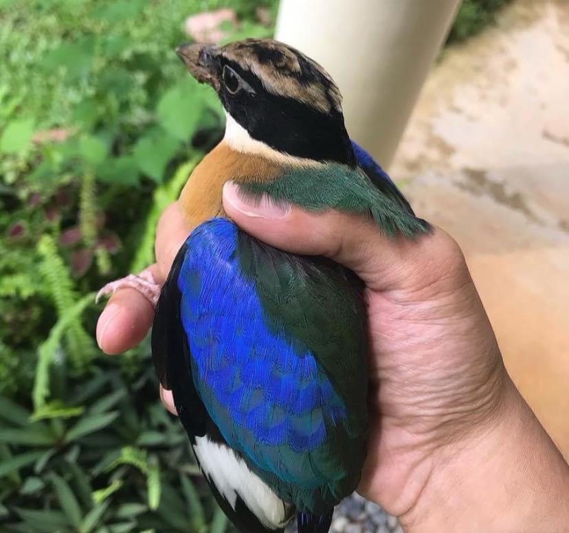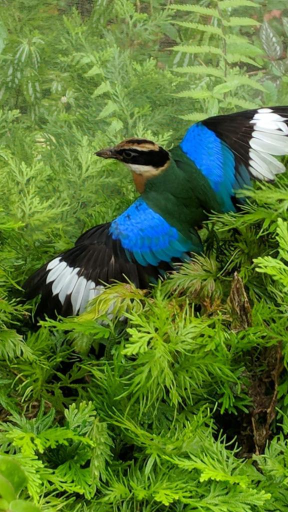 One such memorable incident occurred on 25th October 2018, involving a Blue-Winged Pitta (Pitta moluccensis). This migratory bird found itself in a series of misadventures on our school grounds. Initially, the Pitta had a close call when it collided with a classroom door while being chased by our resident cat. I intervened, shooing away the cat, and was relieved to see the Pitta, though startled, remain active and mobile. After that, I had to rush for lessons and couldn’t find time to attend to it. Later that afternoon, a colleague alerted me to the Pitta’s predicament – it had become trapped inside our Butterfly Enclosure, unable to find its way out.