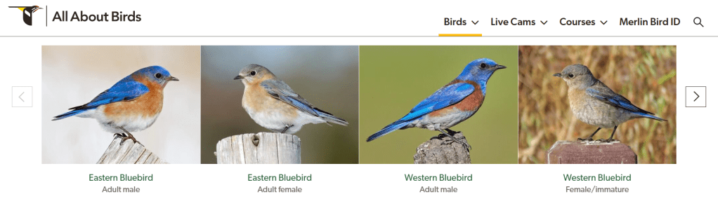 Many common names are based on physical descriptions, which can lead to further confusion. For instance, “bluebird” might refer to several different species across various families. In North America alone, there is a Western Bluebird (Sialia mexicana) and a Mountain Bluebird (Sialia currucoides)… and I believe there is also a Eastern Bluebird (Sialia sialis)?